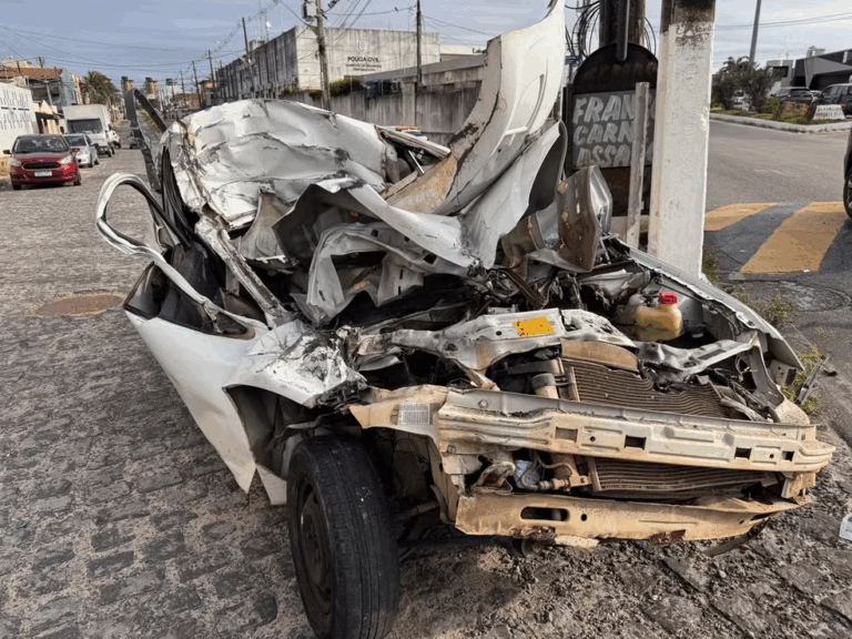 Um carro ficou completamente destruído após colidir violentamente na traseira de um