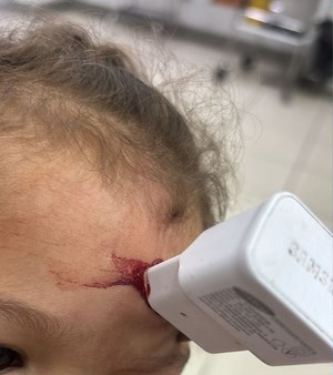 Menina de 1 ano passa por cirurgia após queda da cama com carregador cravado na testa