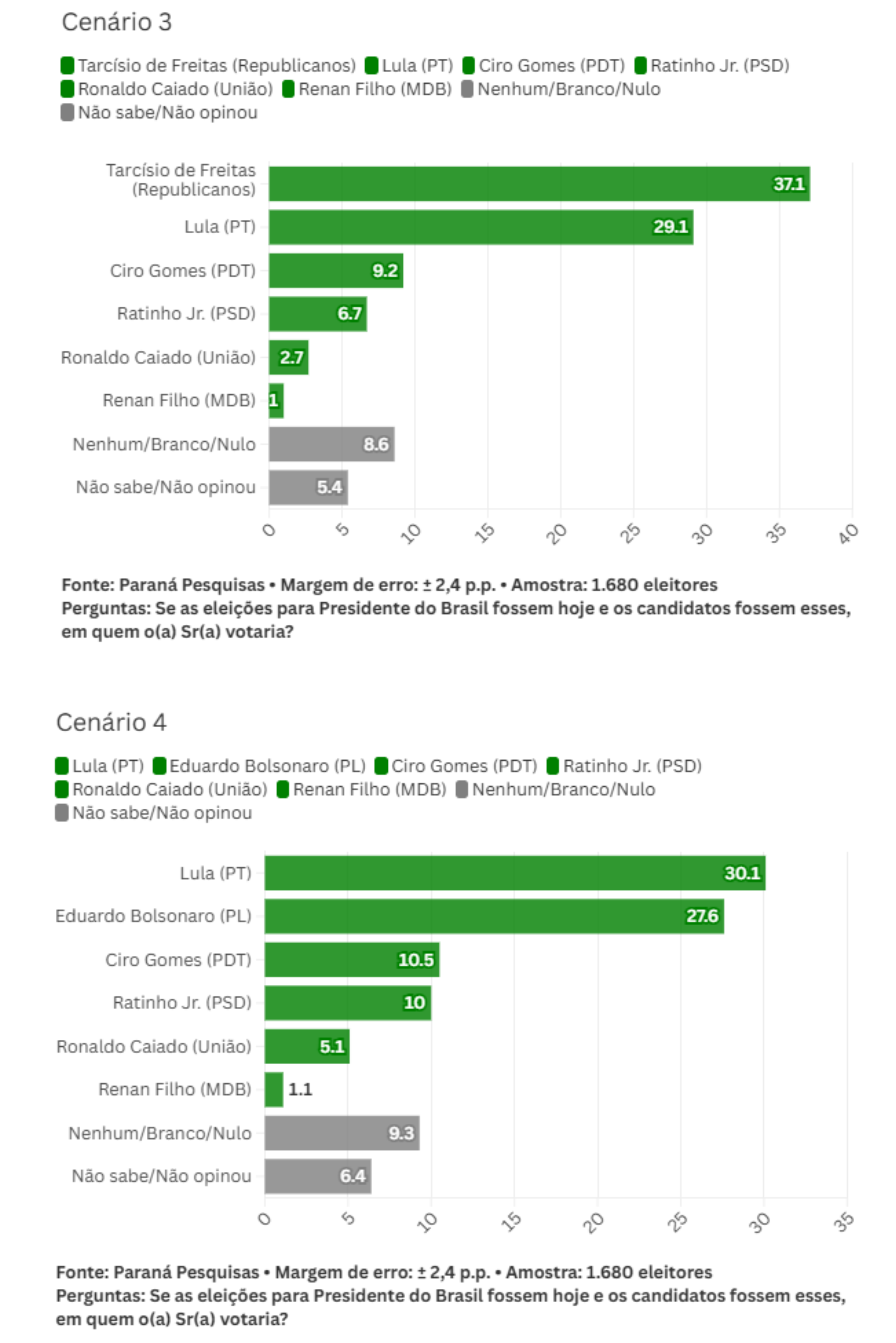 Confira abaixo os quatro cenários avaliados pela pesquisa, apresentados nos gráficos: