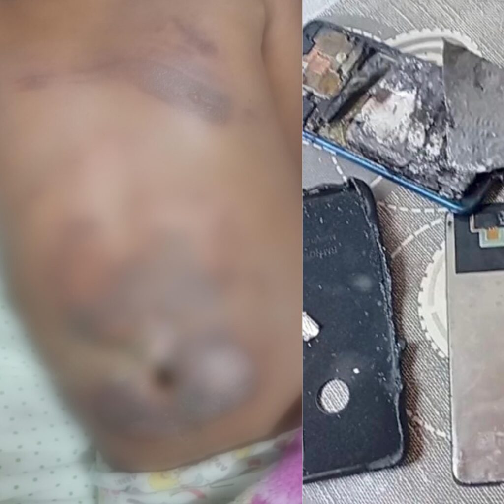 Segundo a mãe da criança, o aparelho não estava em uso nem conectado à tomada no momento do incidente. O menino levava o celular por baixo da camisa quando ela percebeu fumaça saindo da roupa. Assustada, retirou rapidamente a camisa do filho para conter as chamas.