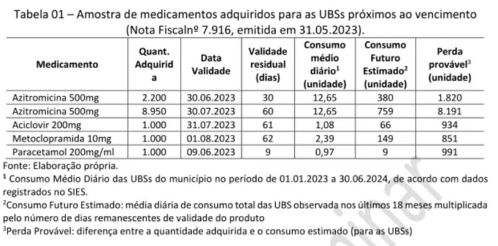 O relatório aponta que, apesar de o município manter mais de mil unidades desse medicamento armazenadas, desde 2023 o maior consumo mensal registrado havia sido de apenas 78 comprimidos.