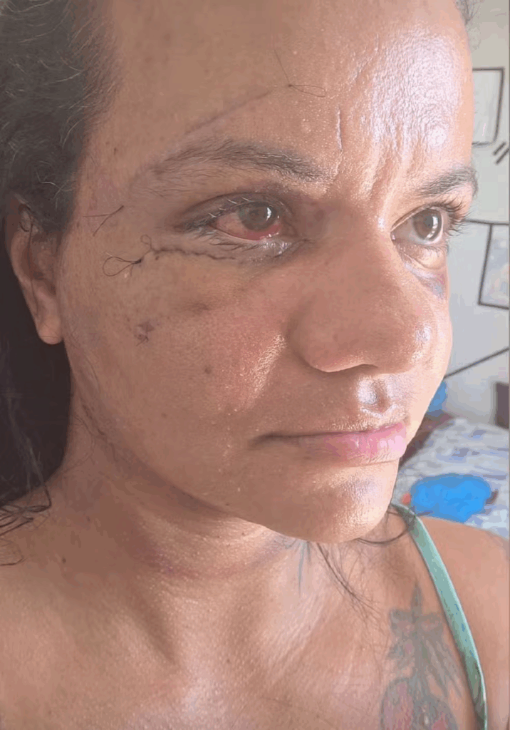 Juliana Soares, 35 anos, agredida brutalmente com mais de 60 socos pelo então namorado dentro de um elevador em Natal, publicou nesta semana a primeira foto do rosto após a cirurgia de reconstrução facial.