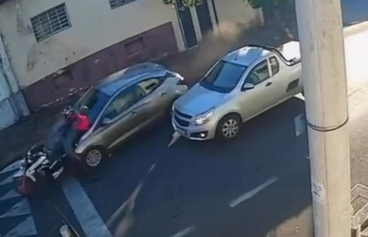 Um motociclista que aguardava o sinal verde foi atropelado por um carro na manhã desta terça-feira (11) em Botucatu (SP). Câmeras de segurança registraram o momento em que o veículo se aproxima em alta velocidade e acerta em cheio a traseira da moto, que estava parada no semáforo, na esquina das ruas Tenente João Francisco e Brás de Assis, no bairro Vila dos Lavradores.