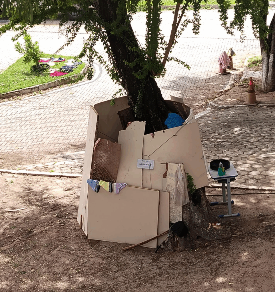 O protesto acabou se transformando em um acampamento montado dentro do Centro Administrativo, em frente à Governadoria. No local, permanecem roupas penduradas no corrimão e um banheiro improvisado usado pelos manifestantes, além da bandeira do MST hasteada ao lado da bandeira do RN.