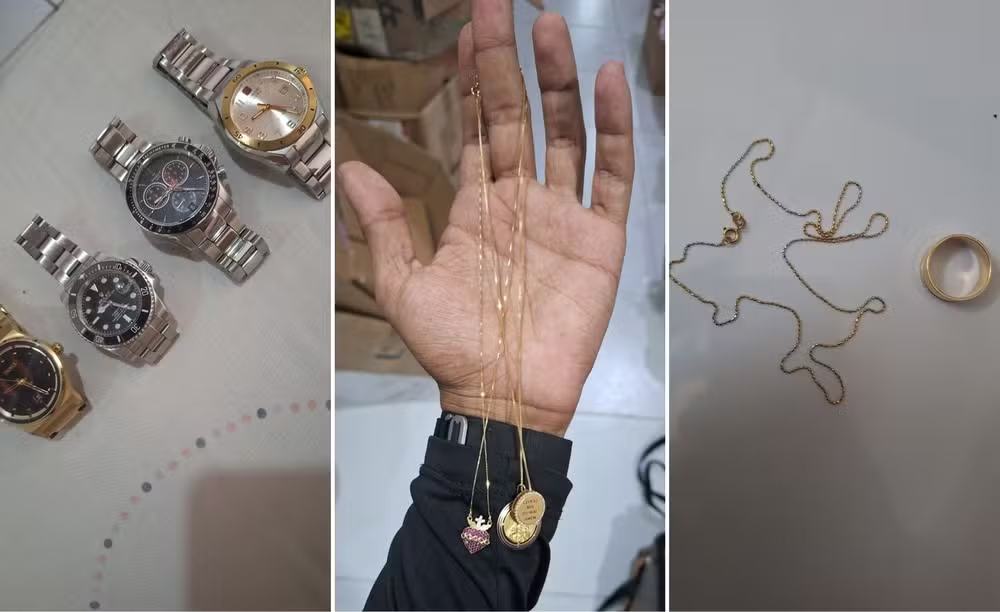 Segundo as investigações, três suspeitos foram identificados no esquema. Parte do material apreendido foi reconhecida pelas vítimas como produto de furto.