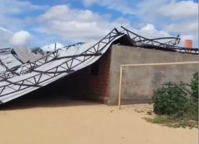 Uma forte ventania causou estragos no município de Galinhos, no litoral Norte do Rio Grande do Norte, nesta quinta-feira (10). A força do vento derrubou a cobertura de um ginásio poliesportivo no distrito de Galos e parte de uma torre de energia eólica na entrada da cidade. Ninguém ficou ferido.
